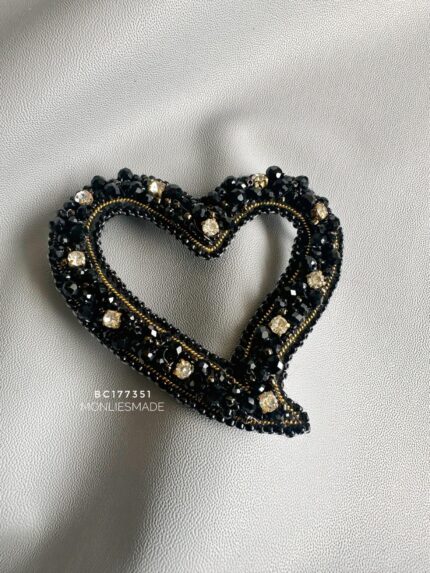 BC172216 – Beadding Small Crystal Love Brooch – Black