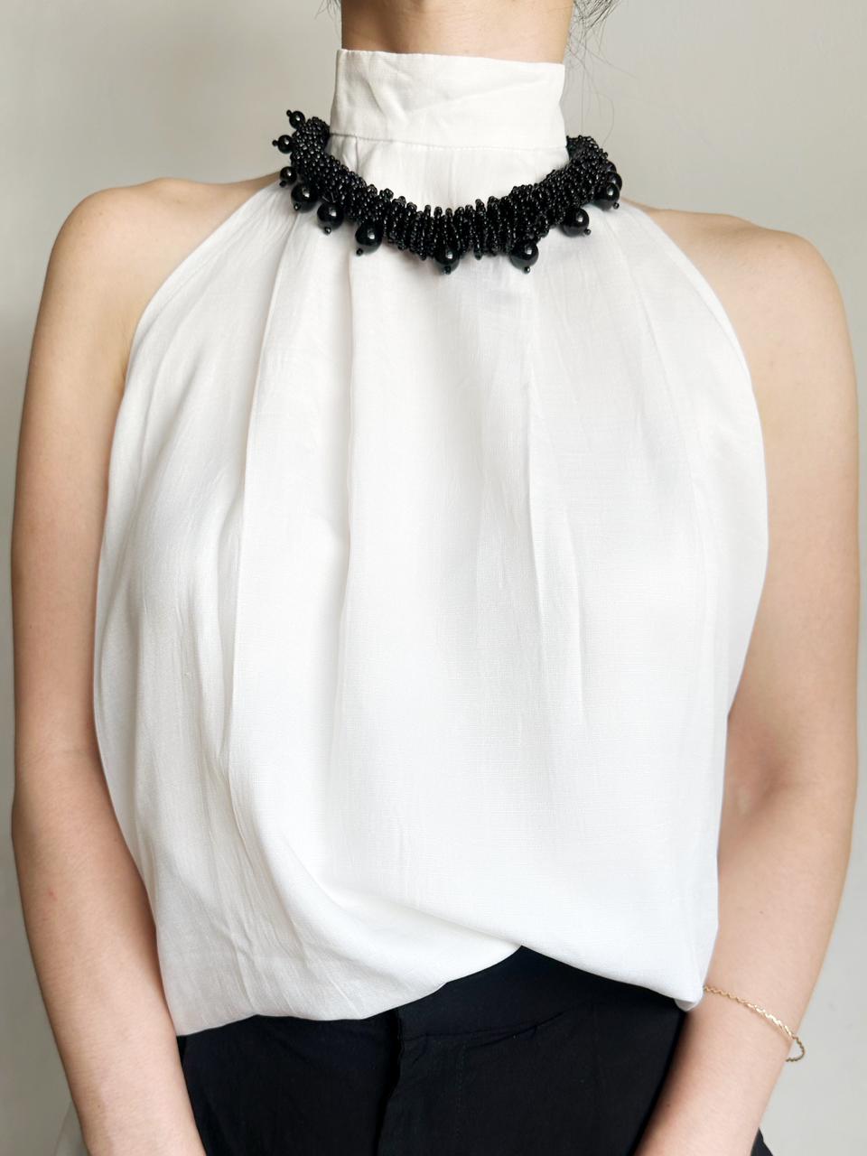 Featuring all materials, this nature-inspired haircut is perfect as a wedding hair accessory for the bride herself, or other relatives. Diamond embellishments add an extra feminine touch to the whole look.