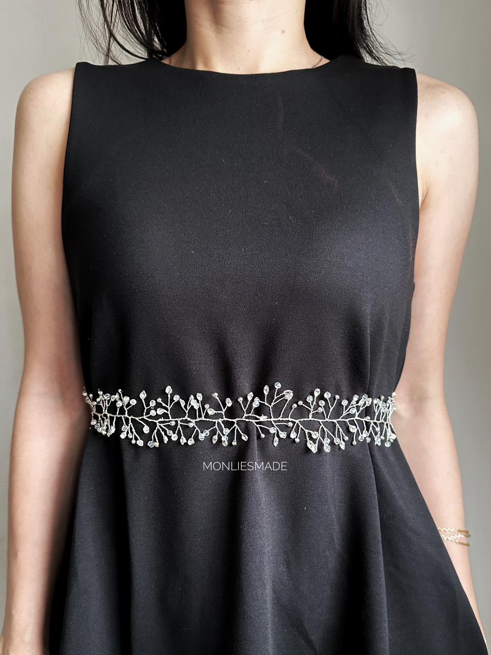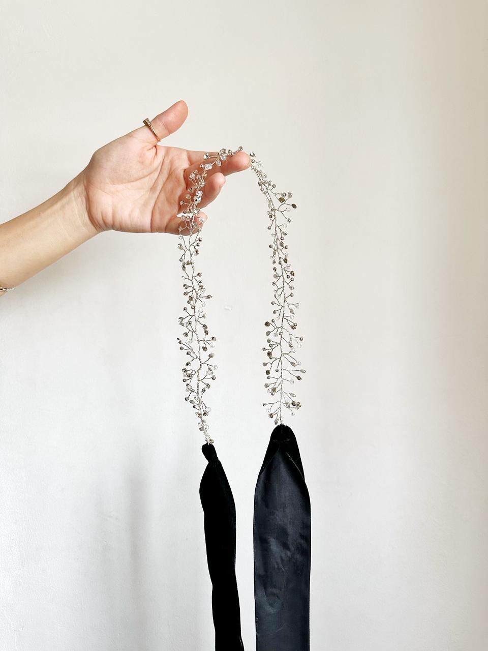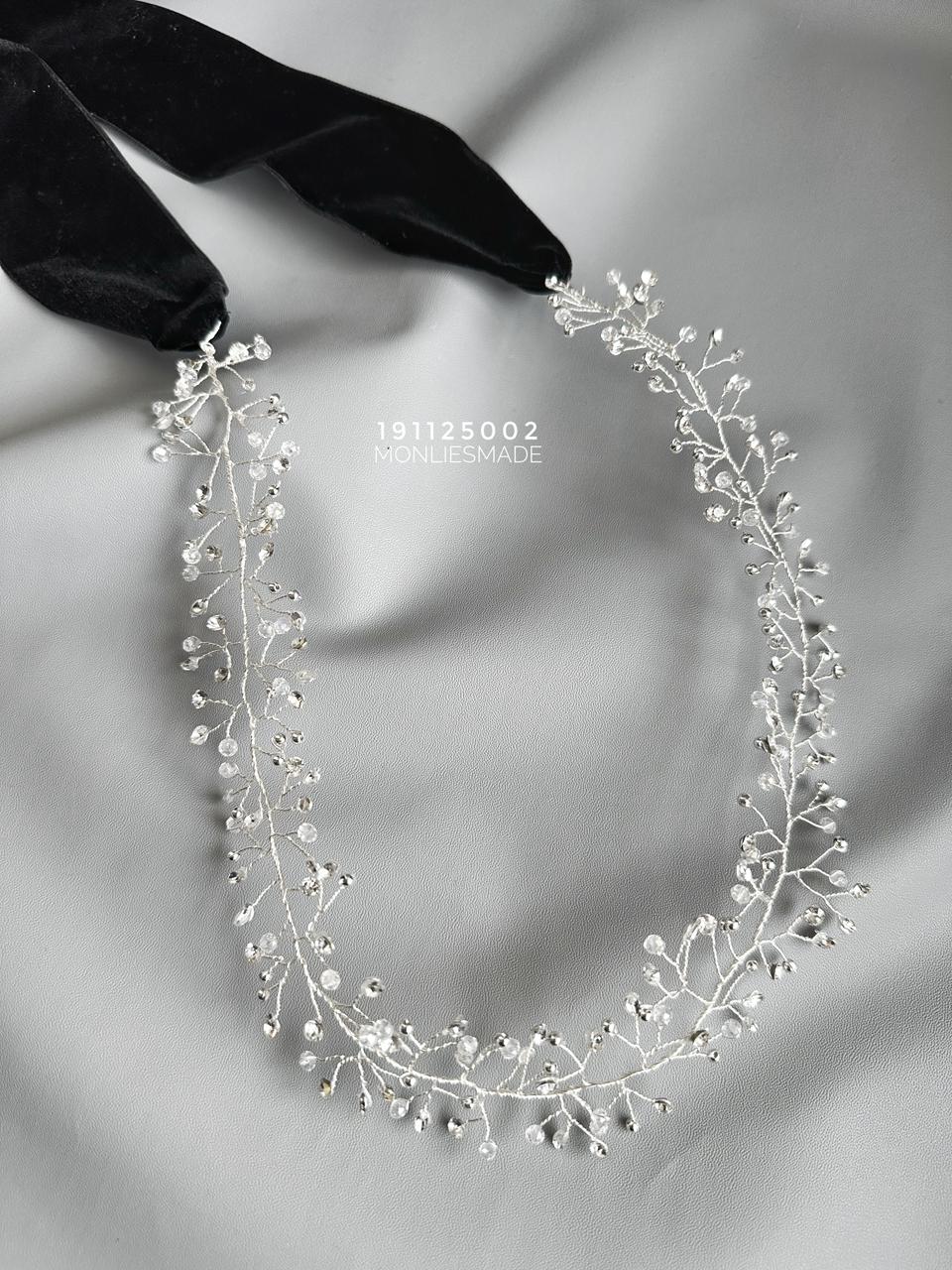 Featuring all materials, this nature-inspired haircut is perfect as a wedding hair accessory for the bride herself, or other relatives. Diamond embellishments add an extra feminine touch to the whole look.