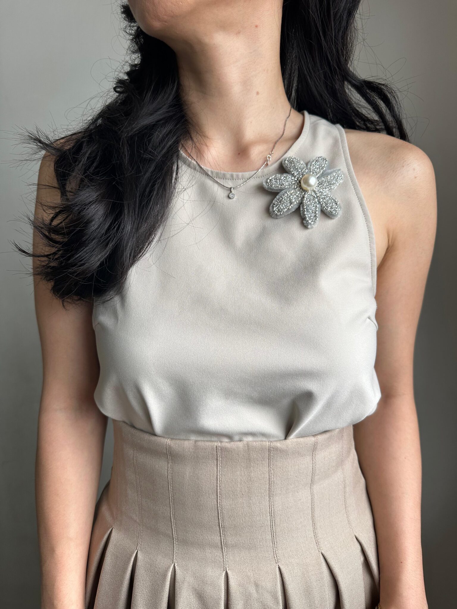 Featuring all materials, this nature-inspired haircut is perfect as a wedding hair accessory for the bride herself, or other relatives. Diamond embellishments add an extra feminine touch to the whole look.