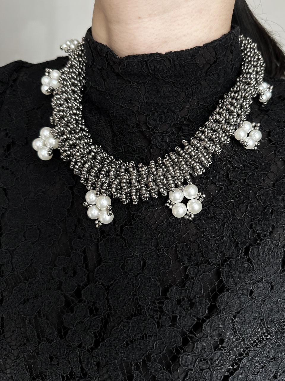 Featuring all materials, this nature-inspired haircut is perfect as a wedding hair accessory for the bride herself, or other relatives. Diamond embellishments add an extra feminine touch to the whole look.