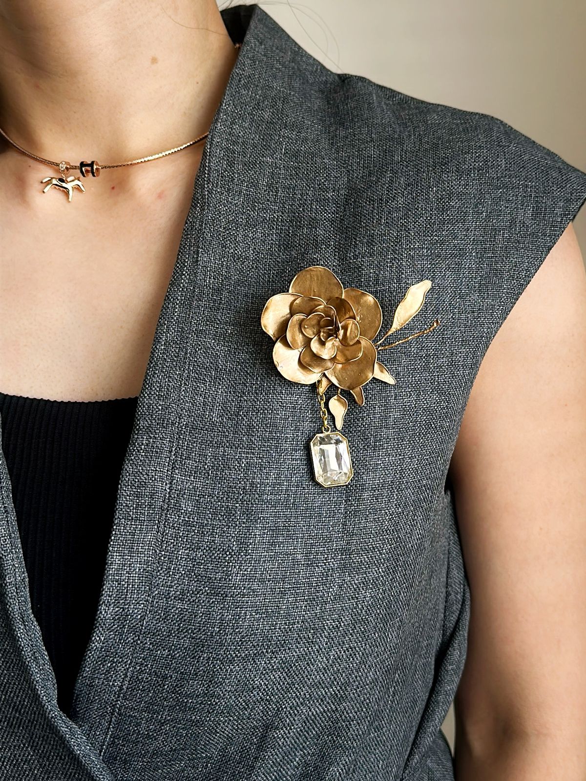 BC050326004 – Handmade Flower Bronze Brooch with Diamond Tussel
