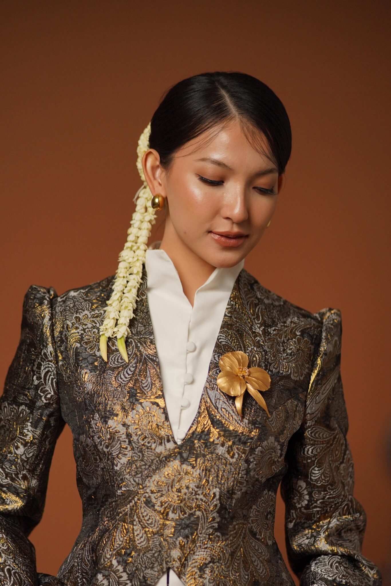 Featuring all materials, this nature-inspired haircut is perfect as a wedding hair accessory for the bride herself, or other relatives. Diamond embellishments add an extra feminine touch to the whole look.