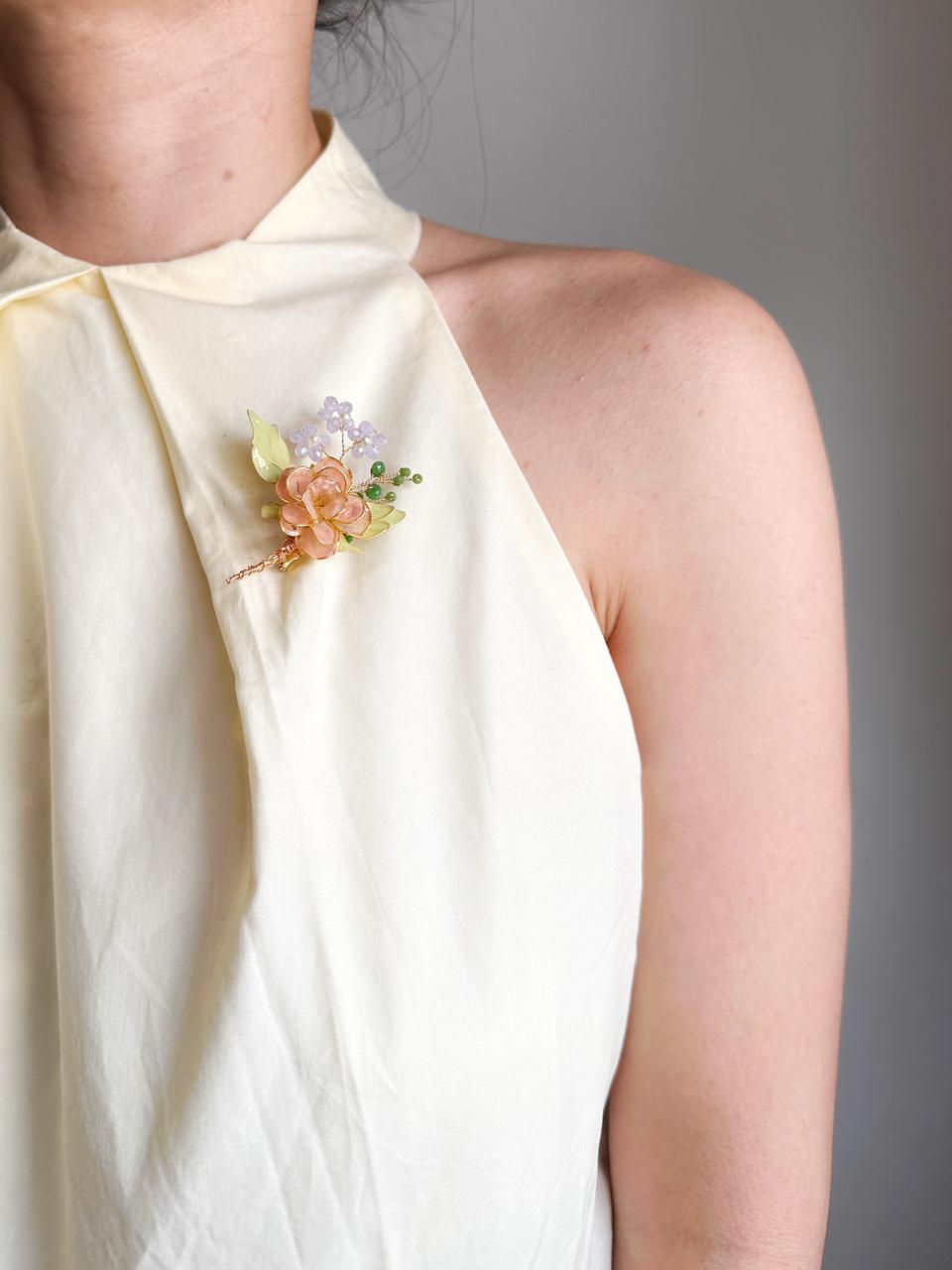 Featuring all materials, this nature-inspired haircut is perfect as a wedding hair accessory for the bride herself, or other relatives. Diamond embellishments add an extra feminine touch to the whole look.