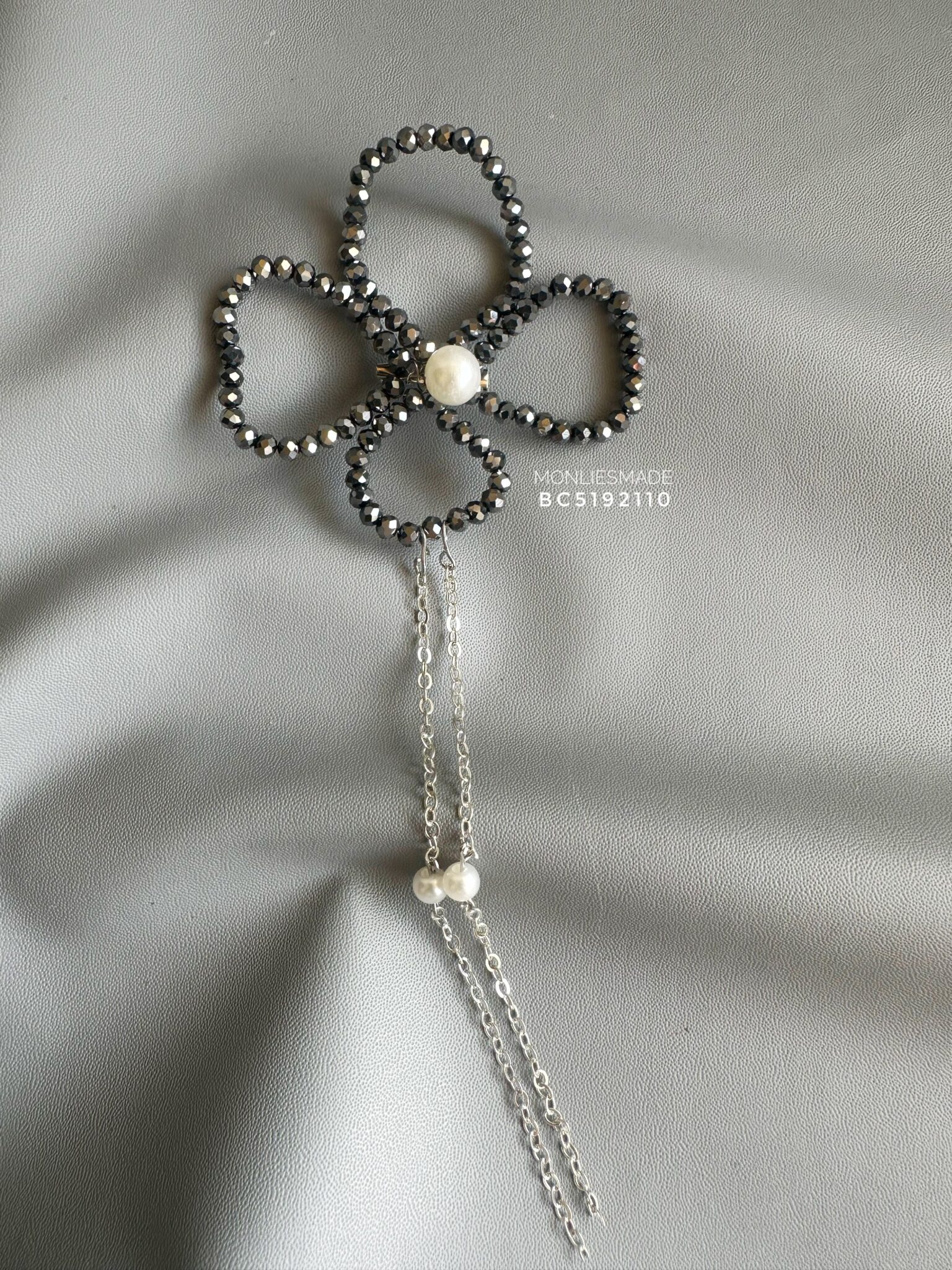 BC5192110 – Handmade Crystal Flower Brooch – Silver