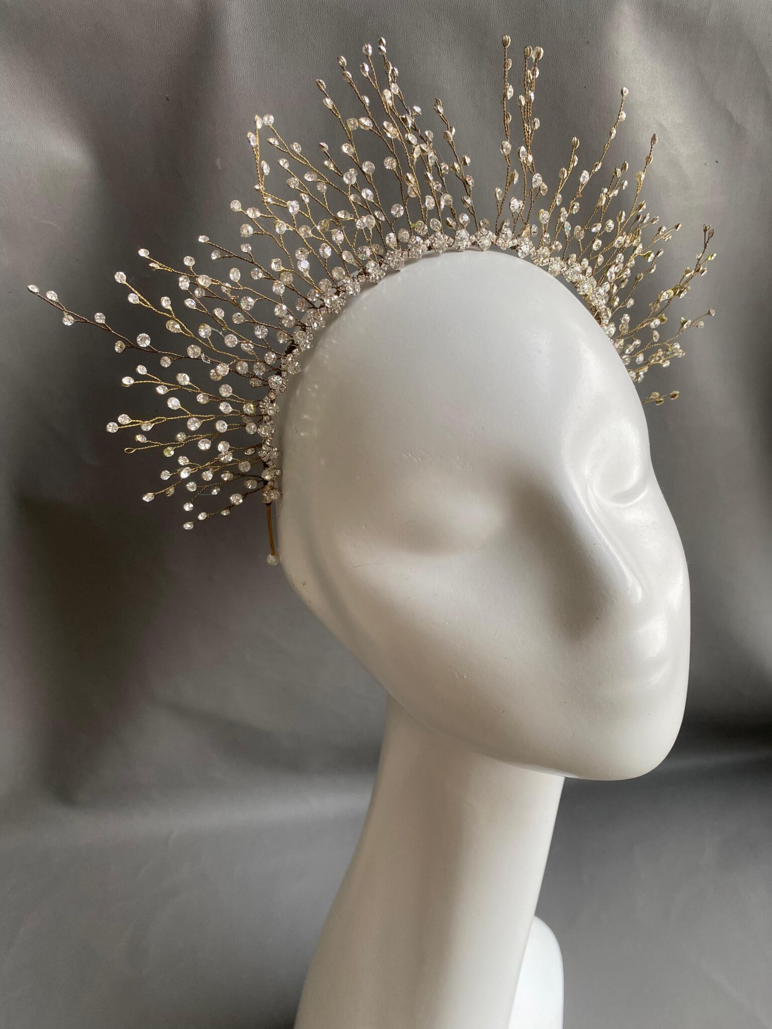 Featuring all materials, this nature-inspired haircut is perfect as a wedding hair accessory for the bride herself, or other relatives. Diamond embellishments add an extra feminine touch to the whole look.