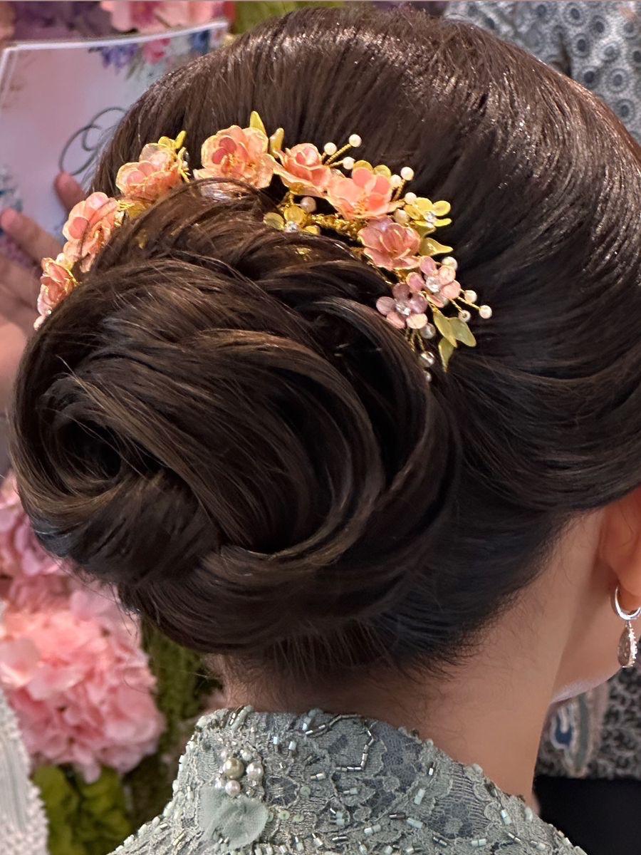 Featuring all materials, this nature-inspired haircut is perfect as a wedding hair accessory for the bride herself, or other relatives. Diamond embellishments add an extra feminine touch to the whole look.