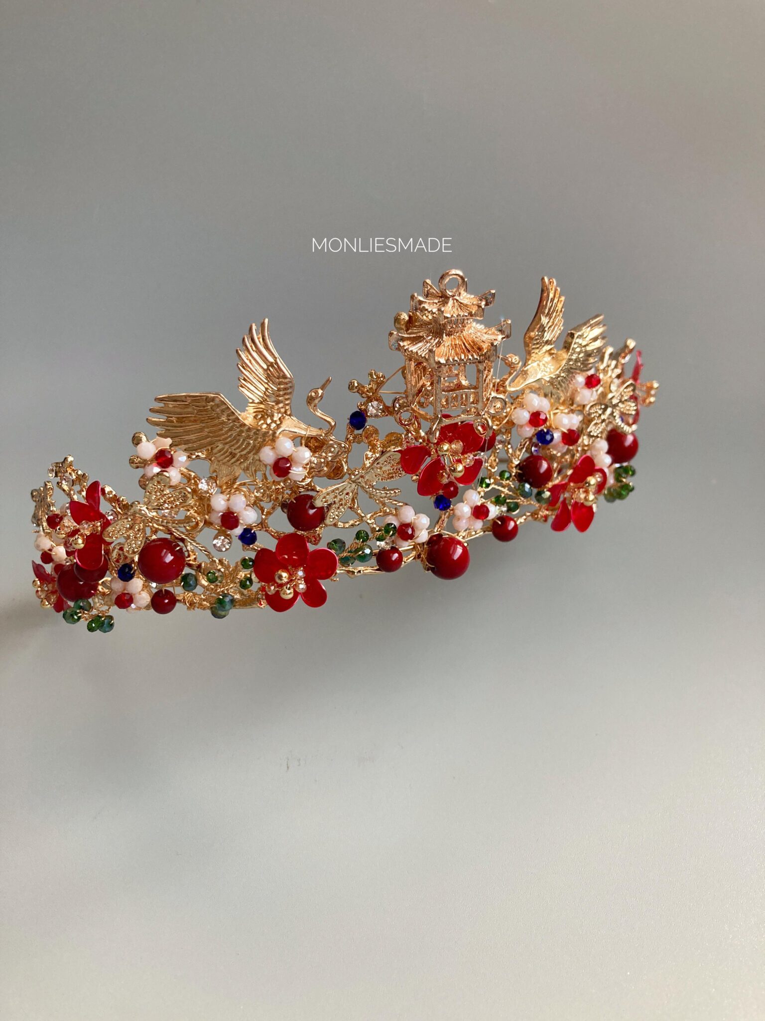 HD100211 – Sangjit Crown Headpiece With Pagoda – Gold