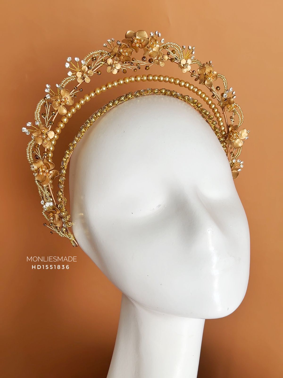 HD1551836 – Handmade Flower Headpiece – Gold